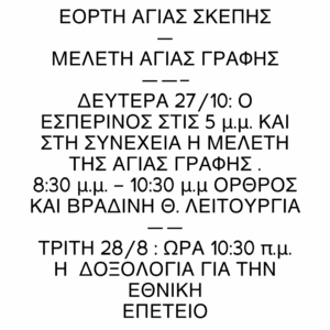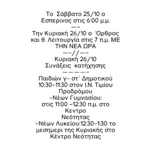 4. Κυριακή 16 Νοεμβρίου πρωί 7-9:45 πρωί θ. Λειτουργία Ι. Ν. Τ. Προδρόμου