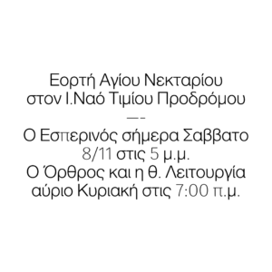 11. Δευτέρα 24 Νοεμβρίου πρωί 7-9 πρωί θ. Λειτουργία Ι. Ν. Τ. Προδρόμου