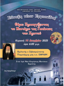 Πέμπτη 25 Δεκεμβρίου ΤΑ ΑΓΙΑ ΧΡΙΣΤΟΥΓΕΝΝΑ πρωί 5:30-8:30 θ. Λειτουργία
