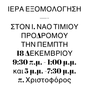 • Τρίτη 23/12 πρωὶ στὶς 6:30 Ὄρθρος καὶ θ. Λειτουργία