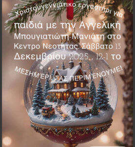 Τὸ Ἀπόδειπνο στὸ Κέντρο Νεότητας στὶς 5:30 μ.μ. καὶ στὴ συνέχεια προβολὴ χριστουγεννιάτικης ταινίας γιὰ παιδιὰ καὶ νέους.